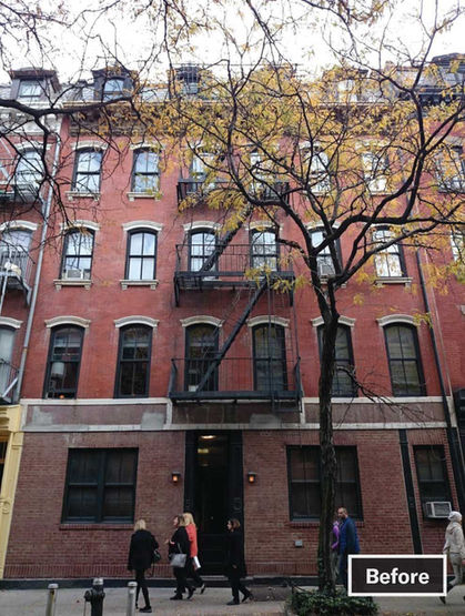373 Bleecker Street is a five story apartment house originally built in 1869 as two separate but identical buildings. A 1936 renovation combined the two structures and replaced the historic wood storefronts at the ground floor with a brick façade and punched openings.